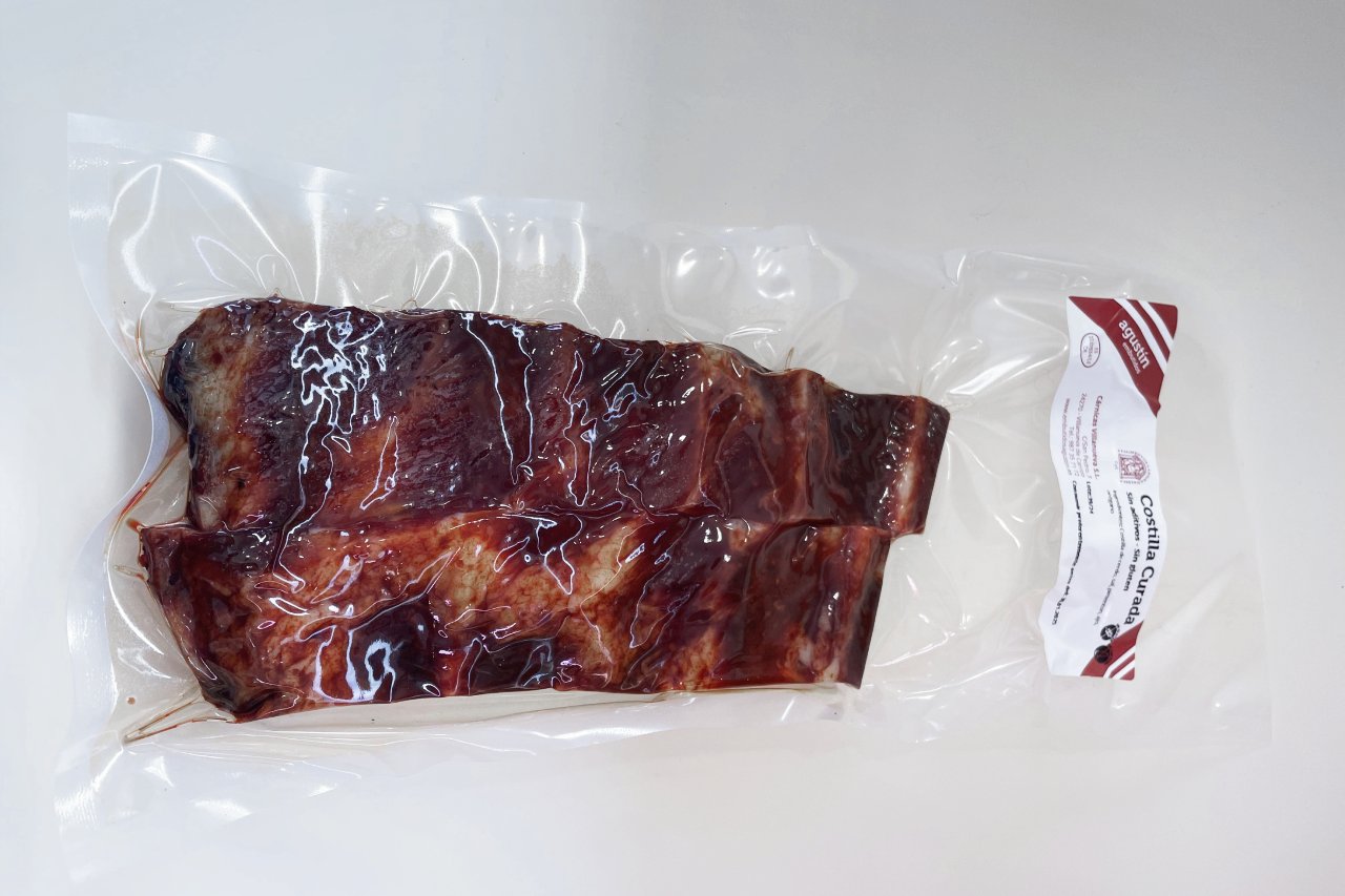 Nuestra costilla curada se elabora con carne de cerdo seleccionada y un proceso de curado natural que resalta todo su sabor. Siguiendo las recetas tradicionales, obtenemos un producto con el punto justo de sal y una textura firme, perfecta para guisos, asados o para disfrutar sola.