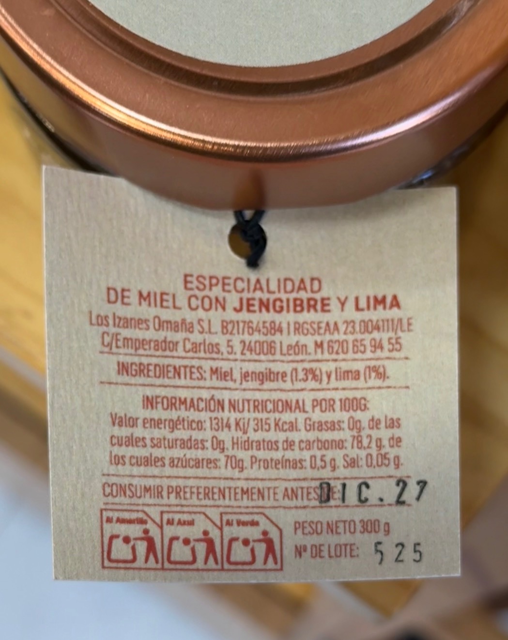 Ingredientes: miel 100 % natural y jengibre molido